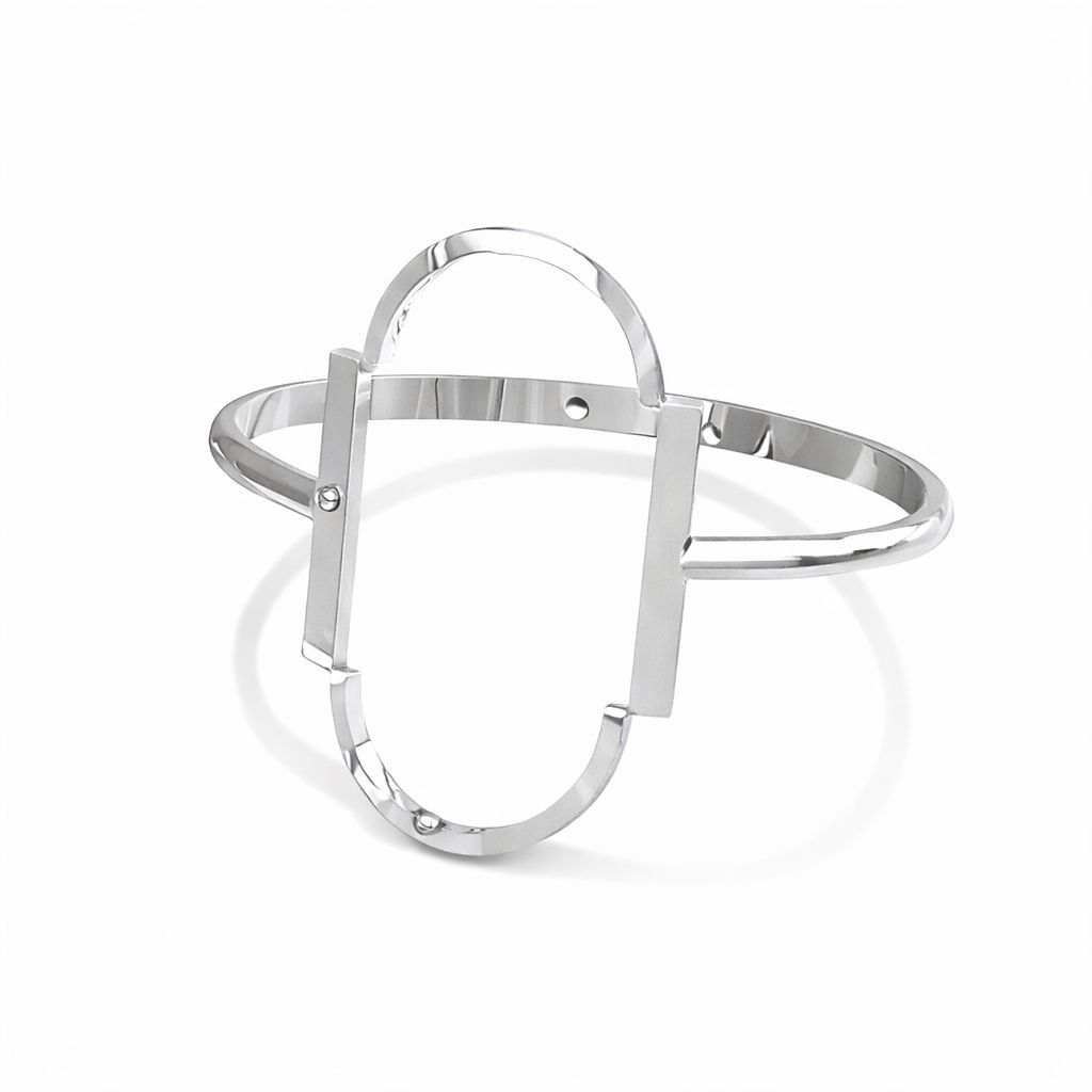 Sa silhouette ovale, subtilement architecturée, dessine une présence délicate sur la main, comme une signature de style.
