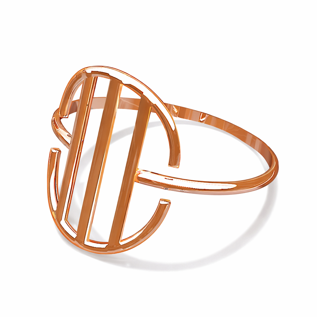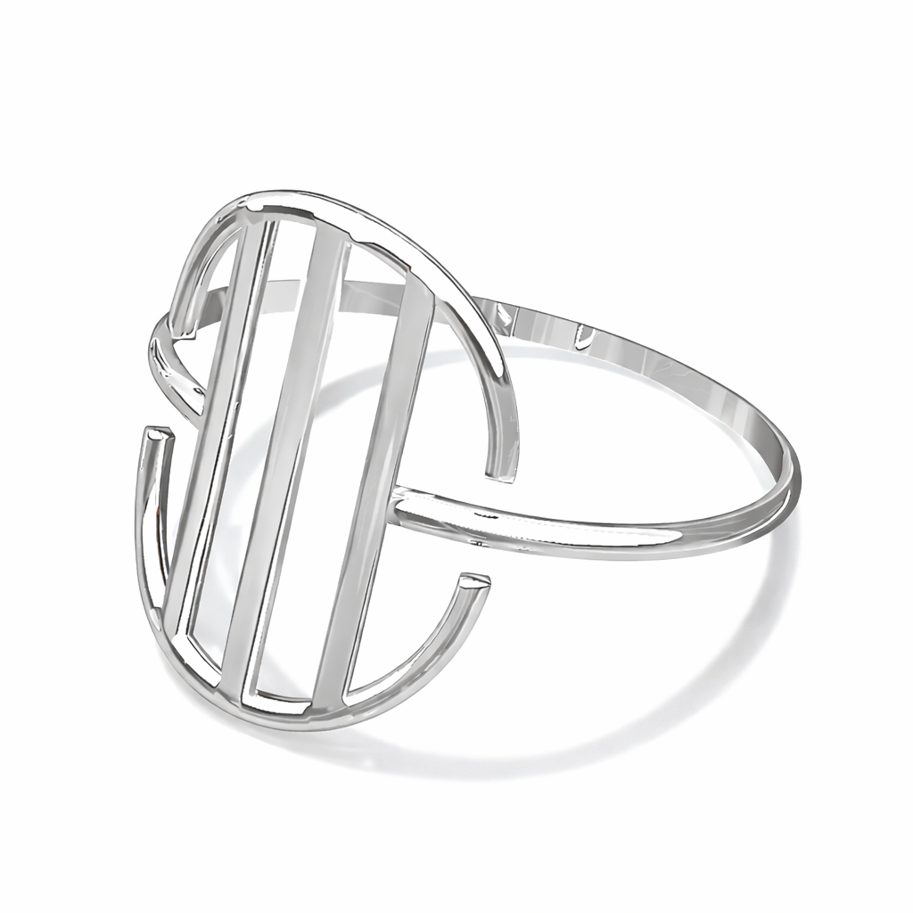 Son motif ovale aux lignes verticales crée un jeu subtil de lumière qui souligne la noblesse du métal et apporte une signature visuelle à la fois moderne et intemporelle. Léger et raffiné, ce bijou se distingue par son équilibre parfait entre minimalisme et sophistication.