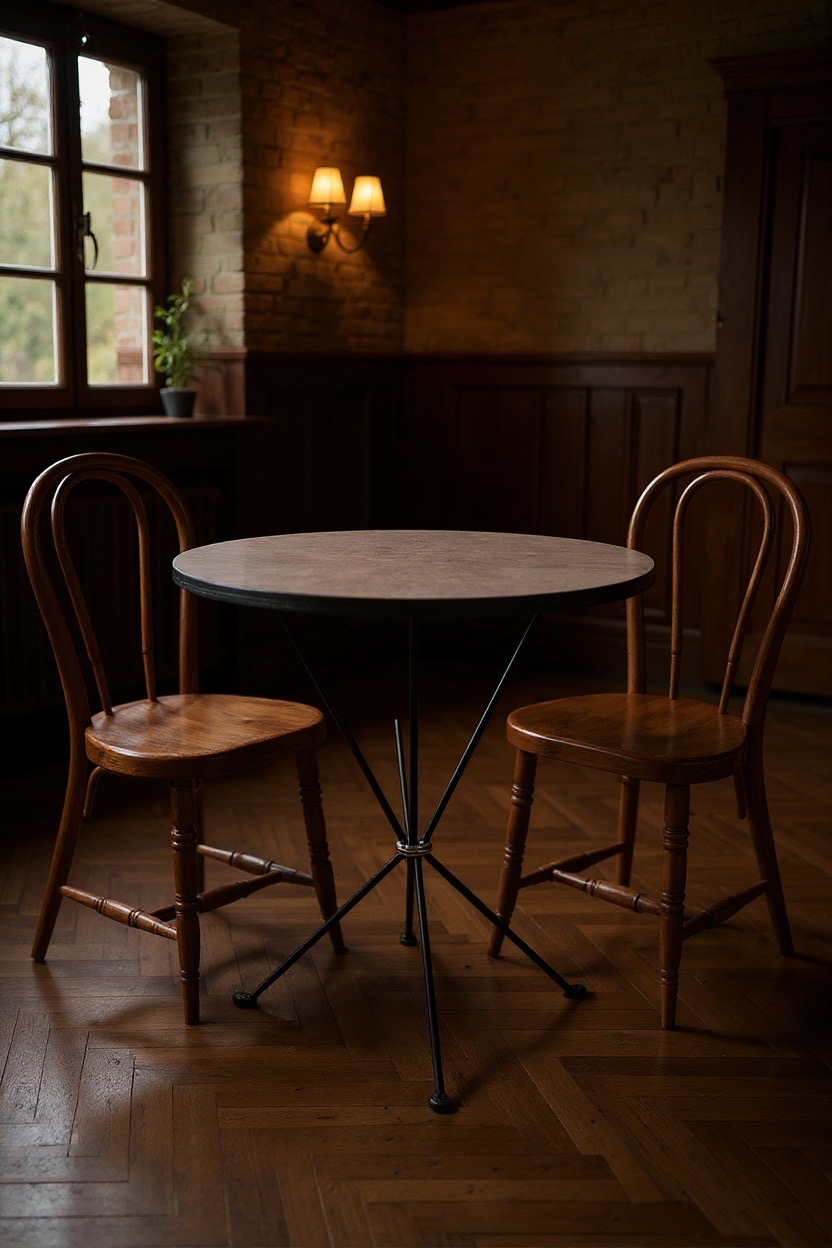 - Pietement en fer Forgé laqué Noir Mat ( anti-rayure) Plateau en pierre de gré ( Céramique) ep. 10 mm